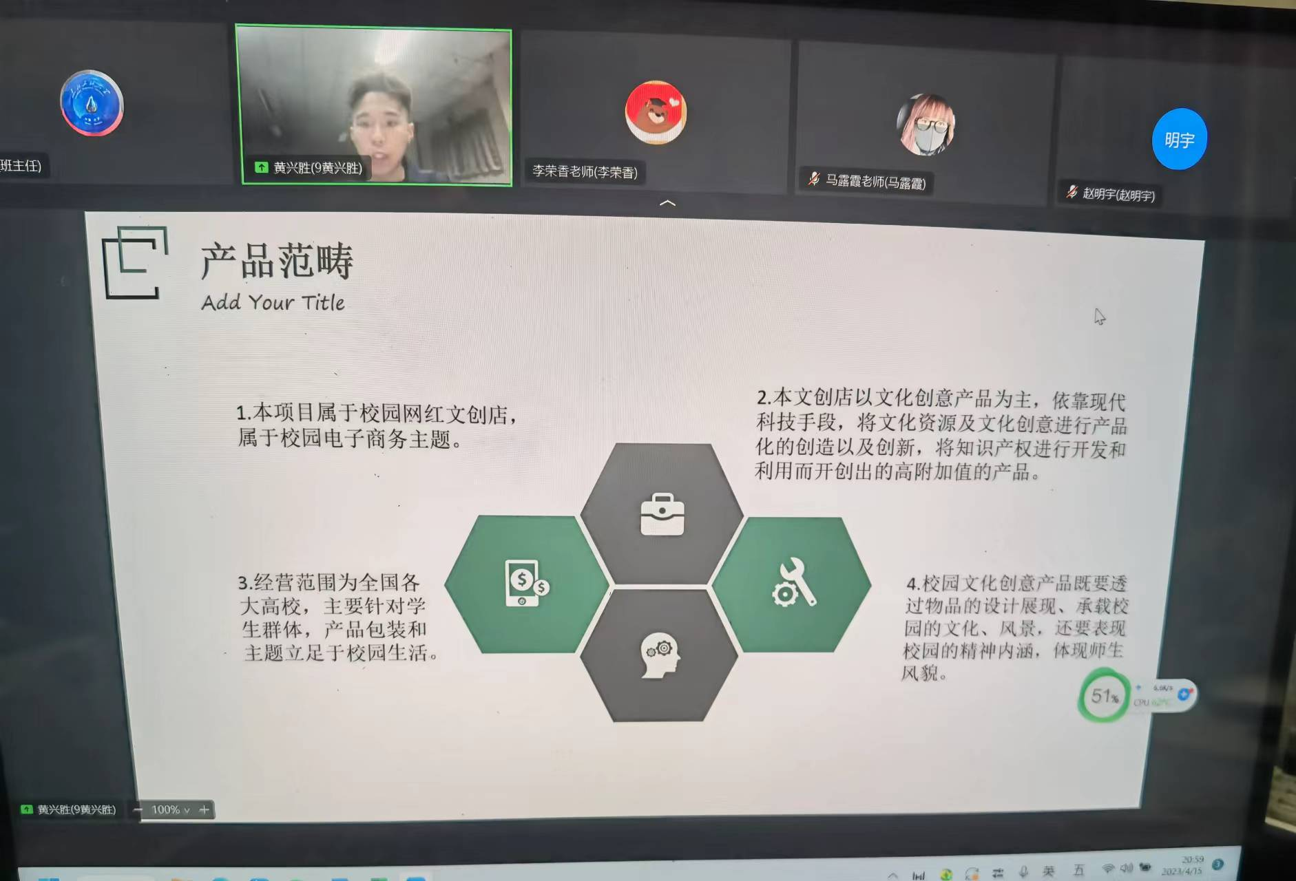 本次三创赛校级,采用线上钉钉会议方式举行,选手们在8分钟内结合PPT等其他多媒体材料对自己的创业计划进行展示,随即进入评委提问环节,提问时间为7分钟。为保证比赛的公平、专业性,成立了以经济管学院赵俊平经理带队的纪检组,教学经理王艳秋带队的仲裁组。并特邀请经管院教师、秦皇岛分院电子商务教师李荣香副教授等校内评委,同时邀请大庆市商务局电子商务科刘少武科长、北京盈信信息科技有限公司、国投盈信秦皇岛科技有限公司董事长兼总经理,沈阳泽加软件科技有限公司总经理,中石油黑龙江省销售公司高级主管等企业专家作为校外评委。初赛和复赛中,评委的专业提问和对参赛项目的建设性点评,给各参赛项目提供了可行性的指导。比赛后员工们普遍反应本次比赛评委点评专业,收获非常大,为项目实施落地提供了有益的参考。